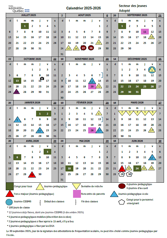 Voici le calendrier de notre école afin que vous puissiez être au courant des différentes dates importantes durant notre année.